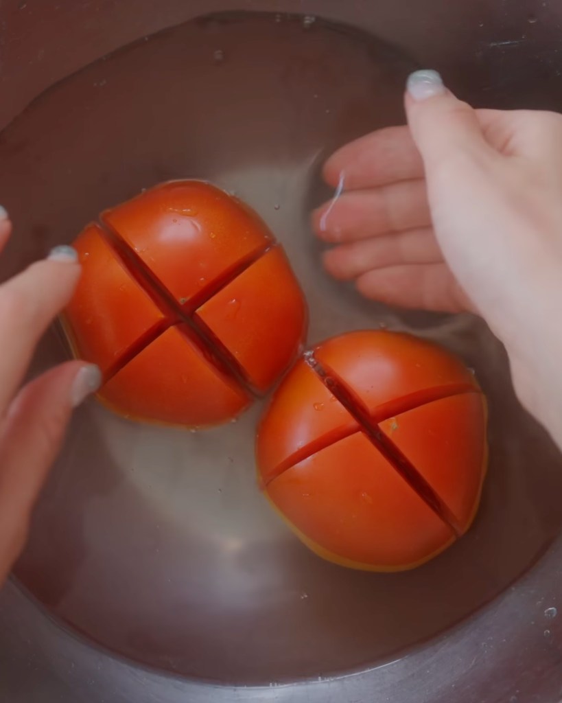 - Brine the prepared tomatoes in the same saltwater solution (4 cups water with 1 Tbsp salt) for 10 minutes.